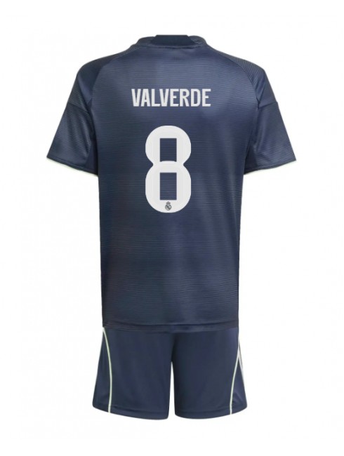 Otroški Nogometna dresi kompleti poceni Real Madrid Federico Valverde #8 Gostujoči 2025-26