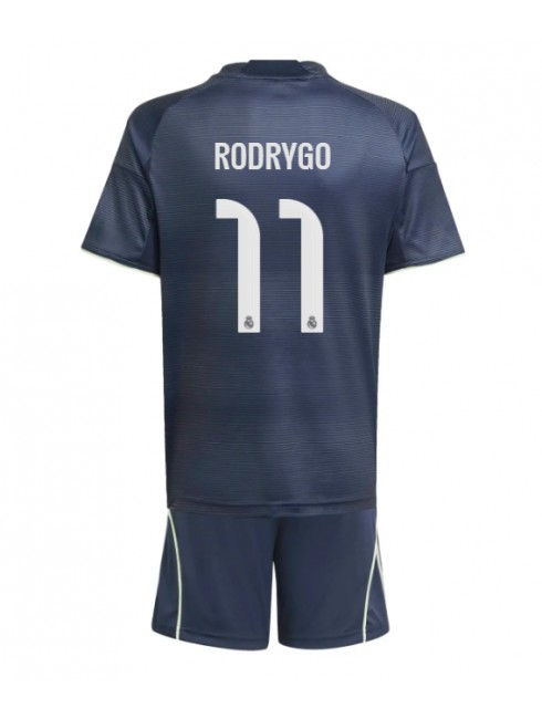 Otroški Nogometna dresi kompleti poceni Real Madrid Rodrygo Goes #11 Gostujoči 2025-26