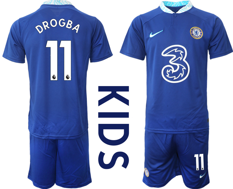 Otroški Nogometni dresi Chelsea Domači 2023 Kratek Rokav + Kratke hlače DROGBA 11