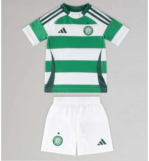 Ikonična majica Bhoys ohranja tradicionalne klubske zeleno-bele obroče, okrašene z edinstvenim dizajnom keltskega vozla na ovratniku, ki simbolizira enotnost med igralci in predanimi navijači.Domači dres za sezono 2024/25 vključuje moderen zaobljen vratni izrez z značilnimi tremi črtami Footballa v temno zeleni barvi, vidno prikazanimi na ramenih.